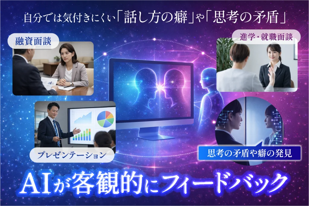 これまで見えなかった「話し方の癖」や「思考の矛盾」を、AIが鏡のように客観的にフィードバック。